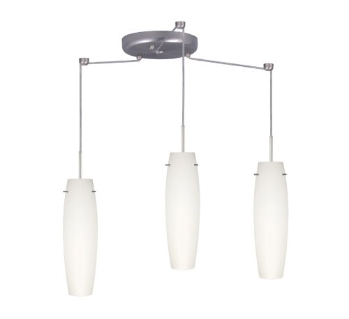 #Light Bulb:(3)40w T4 G9 120v Halogen, Glass:Amber Matte, Cage:Cage A, Finish:Satin Nickel This three light pendant provides a beautiful, flexible solution for decorative lighting. Handcrafted European glass Includes three stem hooks 10' Clear-coated SVT cords Suitable for sloped ceilings Dimmable with standard incandescent dimmer Note: Halogen bulb(s) are included; incandescent bulb(s) are not.