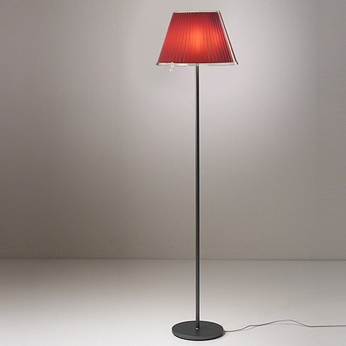 #Artemide, Choose Floor Lamp The Artemide Choose Floor Lamp, designed by Matteo Thun, is a standing luminaire with an adjustable diffuser for direct and diffused incandescent lighting. The diffuser is transparent polycarbonate with a pleated design, incorporating a red silk and polycarbonate fiber blend or parchment paper and removable insert. The diffuser adjusts with a transparent clip to full downwards and 30¡ upwards position, and also rotates 350¡ around its vertical axis. The base and stem are dark grey painted steel. The light has an on/off switch on cord and is U.L. Listed.