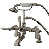 Kingston Brass CC651T8 Vintage 4-Inch to 13-Inch Adjustable Center Deck Mount Leg Tub Filler with Hand Shower, Satin Nickel