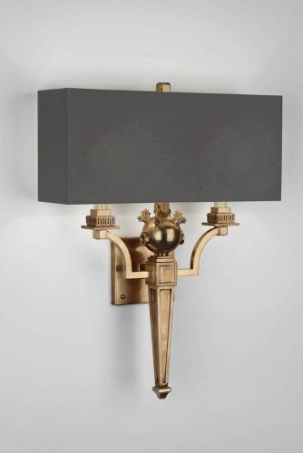 Robert Abbey 2531X Mary Madonald Leopold - Two Light Wall Sconce, Natural Brass Finish with Charcoal Gray Cotton Shade