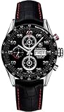 NEW TAG HEUER CARRERA DAY DATE MENS WATCH CV2A10.FC6237- NO SALES TAX (Outside California) - WITH MANUFACTURER SERIAL NUMBERS - Black Dial - Chronograph Feature - Day & Date Calendar - Self Winding Automatic Movement - Sapphire Crystal Exhibition Back - 3 Year Warranty - Guaranteed Authentic - Certificate of Authenticity - Polished Steel Case - Black Leather Strap with Alligator Pattern & Red Stitching - Scratch Resistant Sapphire Crystal - Manufacturer Box & Manual - 100 Meters / 300 Feet Water Resistant - 43mm = 1 5/8" Case, 7" Adjustable Strap - Deployment Buckle - Luminescent Hands Also Known As Model # CV2A10 FC6237 / CV2A10FC6237