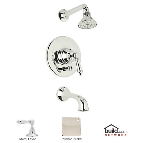 Rohl AKIT32LM-PN Country Bath Pressure Balance Tub and Shower Trim in?Country Bath Shower Package with Metal Lever Includes C5504 A2400Lm and C2503.Collection: Country Bath Finish: Polished Nickel Handle Style: Lever Handles: 1 Handles Included: Yes Material: Brass Type: Single Handle{7" Shower Arm with Showerhead: 1 2" Female NPT inlet 7" Reach Single-function spray Swivel head {Pressure Balance Trim with Metal Lever Handle and Diverter: Single lever control with Diverter Trim for concealed pressure balance shower and bath valve {7" Wall Mount Tub Spout: 3 4" Female NPT inlet 7" Reach