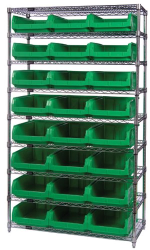 Quantum Storage Systems WR9-531RD 9-Tier Complete Wire Shelving System with 24 QMS531 Red Magnum Bins, Chrome Finish, 18" Width x 42" Length x 74" Height
